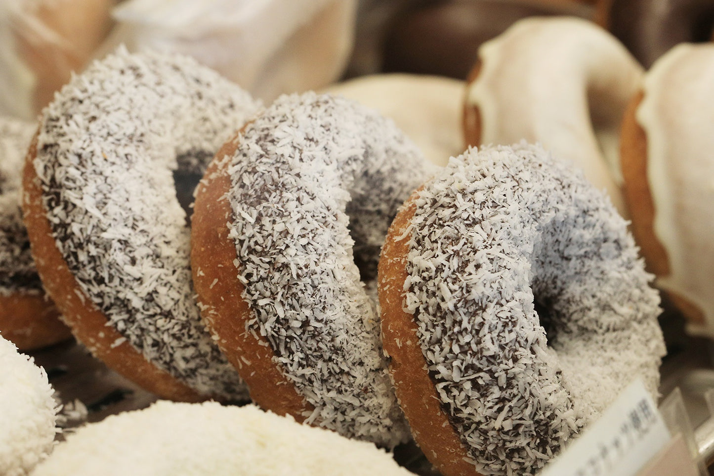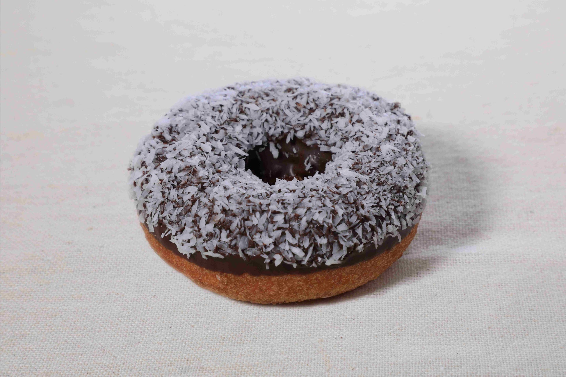 ネイチャードーナツにチョコレートをコーティングしココナッツをまぶしました。